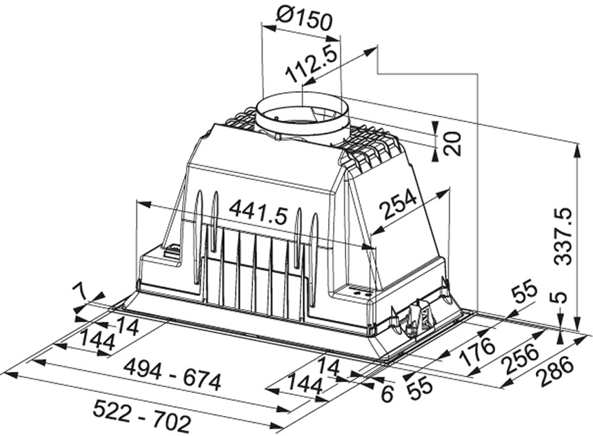 | Выходное отверстие: | 150 мм |